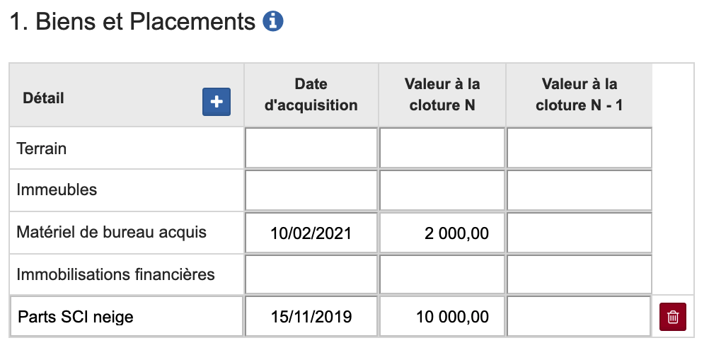 1. Biens et Placements