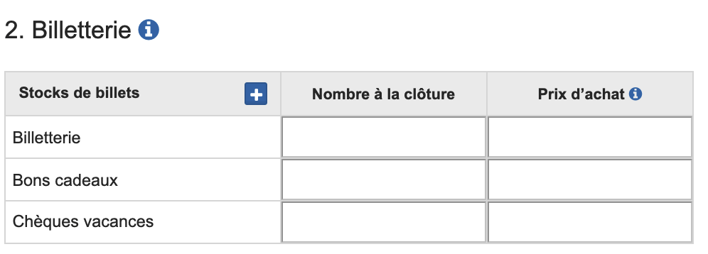 Cet état donne la valeur de la billetterie qui reste en stock à la date de clôture de l’exercice. Un inventaire doit ainsi être établi.