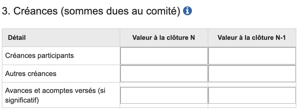 3. Créances (sommes dues au comité)