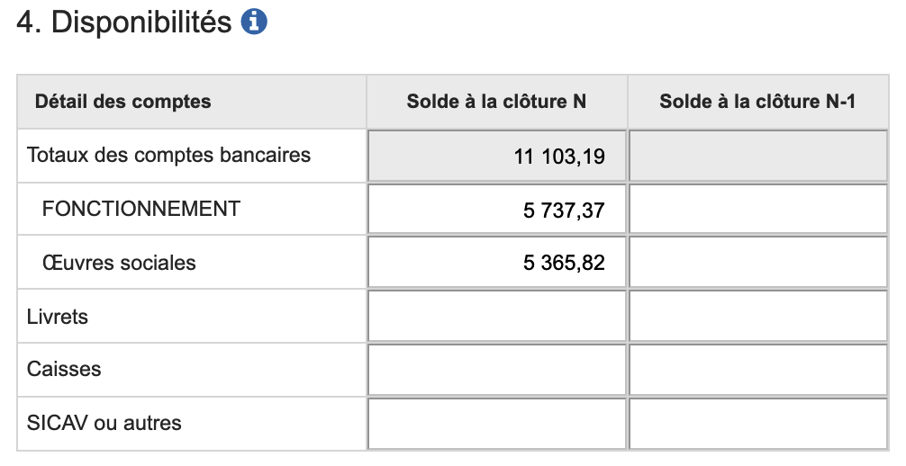 Le solde des comptes bancaires et autres disponibilités sont à mentionner à la date de clôture de l'exercice.