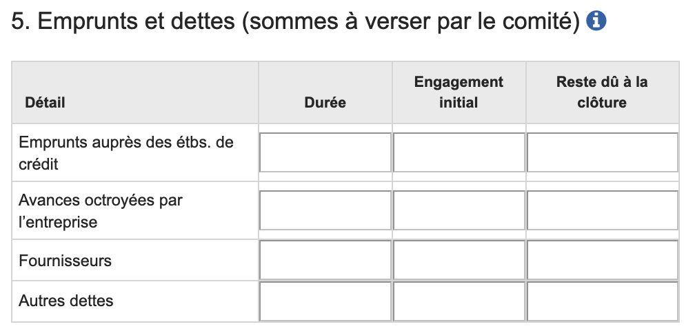 5. Emprunts et dettes (sommes à verser par le comité)