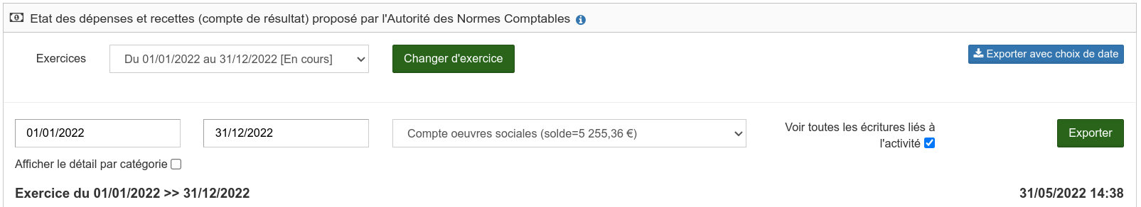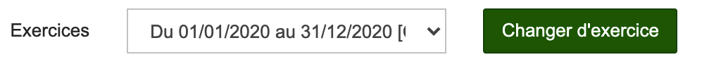 Vous pouvez sélectionner (zone déroulante), l'exercice concerné et valider à partir du bouton “Changer d'exercice”.