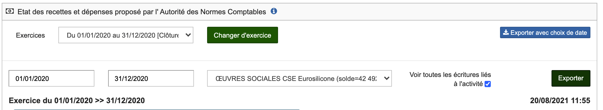 Vous pouvez sélectionner (zone déroulante), l'exercice concerné et valider à partir du bouton “Changer d'exercice”.