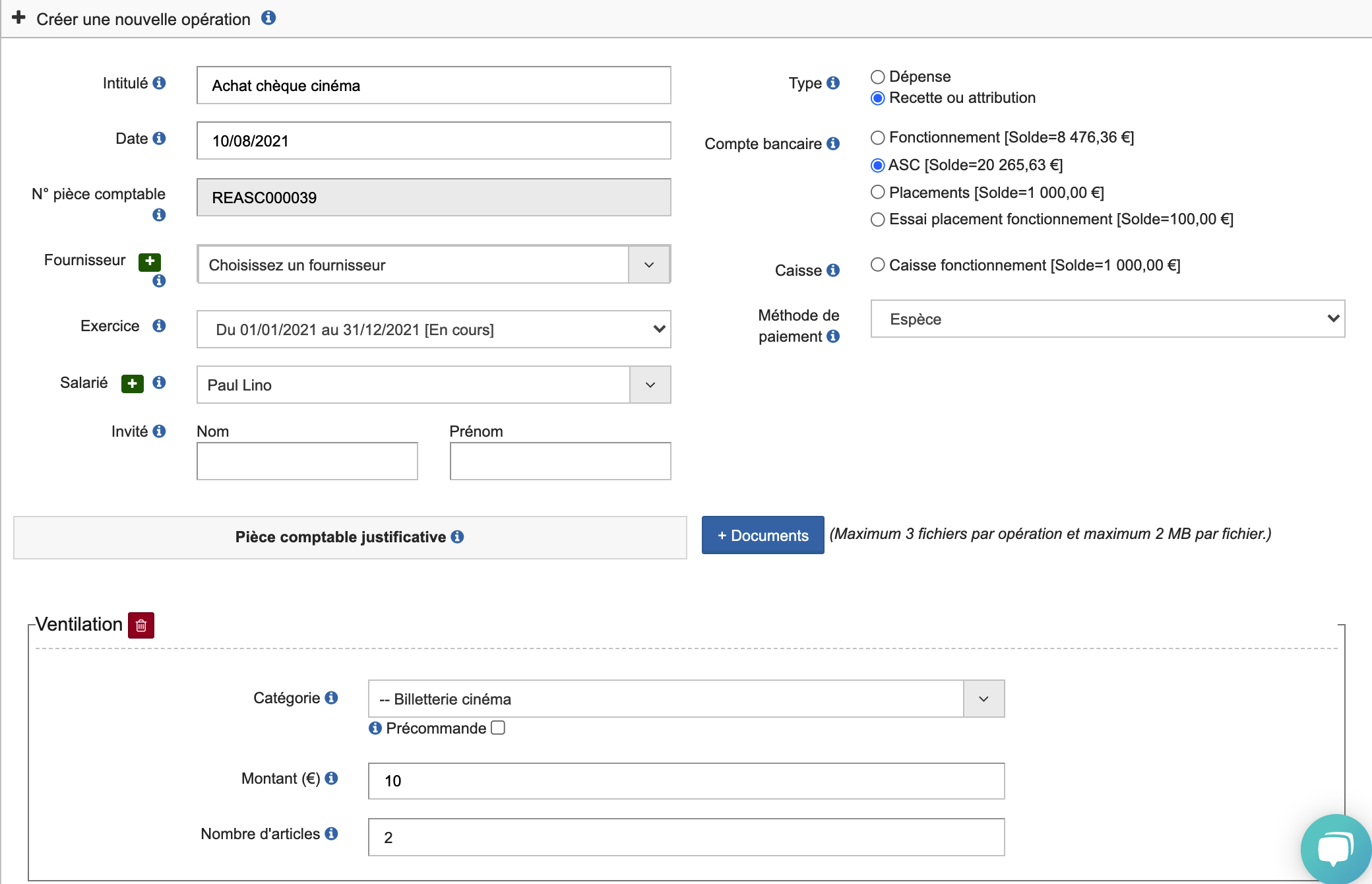 Exemple : Un salarié qui achète des chèques cinéma en espèce.