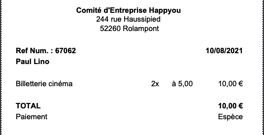 Un ticket de caisse est un reçu que les CSE remettent à chacun de leurs bénéficiaires sur laquelle figure le récapitulatif de leurs achats et le montant qu'ils ont réglé. Le ticket de caisse est important lorsqu'il y a un règlement en espèce de la part du salarié. En effet, il est nécessaire et obligatoire de justifier de cette recette pour le CSE.
